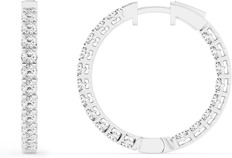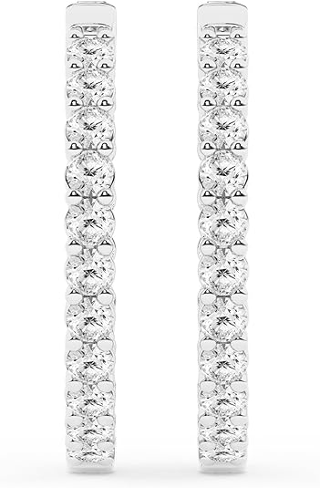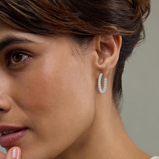 925 Sterling Silver Craftsmanship: Made with premium, nickel-free sterling silver, these hoops are hypoallergenic and safe for the most sensitive ears. The metal is polished to a mirror shine to complement the cool tones of the diamonds.