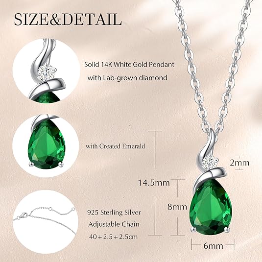 Emeralds are notoriously “included” stones, but FANCIME utilizes high-quality created emeralds to ensure a vivid, forest-green clarity that is often impossible to find in natural stones without a five-figure price tag. This stone is meticulously cut into a teardrop shape to maximize light refraction, complemented by a single lab-grown diamond that sits just above the main gemstone for a touch of classic luxury.