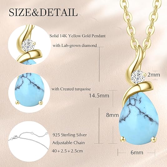 Solid 14k Gold Pendant: The teardrop setting is made from genuine 14k yellow gold, meaning the gold color will never rub off or fade, unlike plated alternatives.