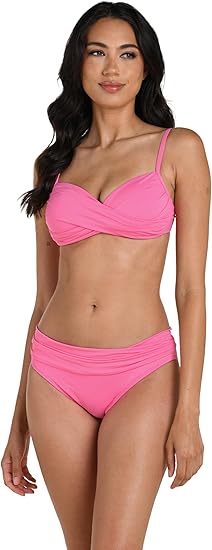 The La Blanca Island Goddess Collection is designed for the modern woman who values both fashion and function. This wrap-style bikini top isn’t just about looks—it’s engineered to enhance your natural curves while providing the security you need for an active day at the beach. The surplice wrap detail creates a slimming effect across the bust, while the vibrant solid colors provide a sophisticated “minimalist” aesthetic that never goes out of style.