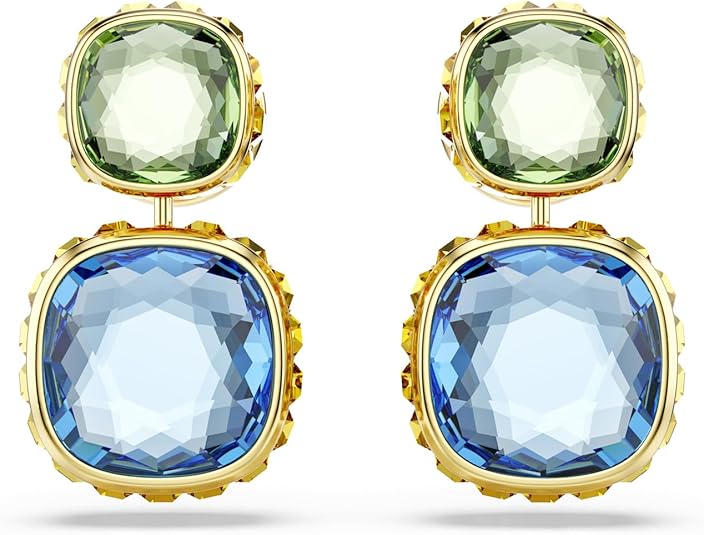 The Chroma Twist Earrings bring a playful, innovative edge to the Constella family. Crafted with a luxurious gold-tone finish, these dangles feature a Swarovski ReCreated™ green crystal at the post, suspending a reversible centerpiece. With a quick flip, you can display a deep blue crystal or a vibrant pink crystal, allowing you to match your jewelry to your mood or outfit instantly. Precision-cut and ethically conscious, these earrings are a radiant celebration of color and modern geometric design.