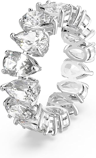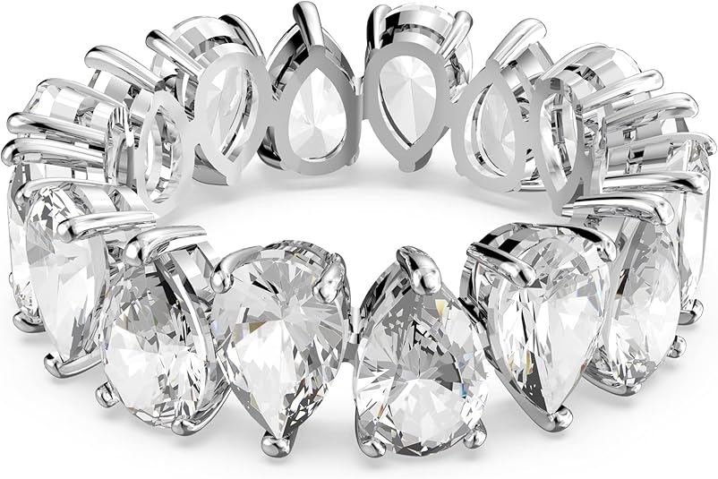 Precision Pear-Cut Crystals: Features a continuous row of “drop-shaped” faceted stones, a cut known for its ability to elongate the appearance of the finger when used in ring designs.